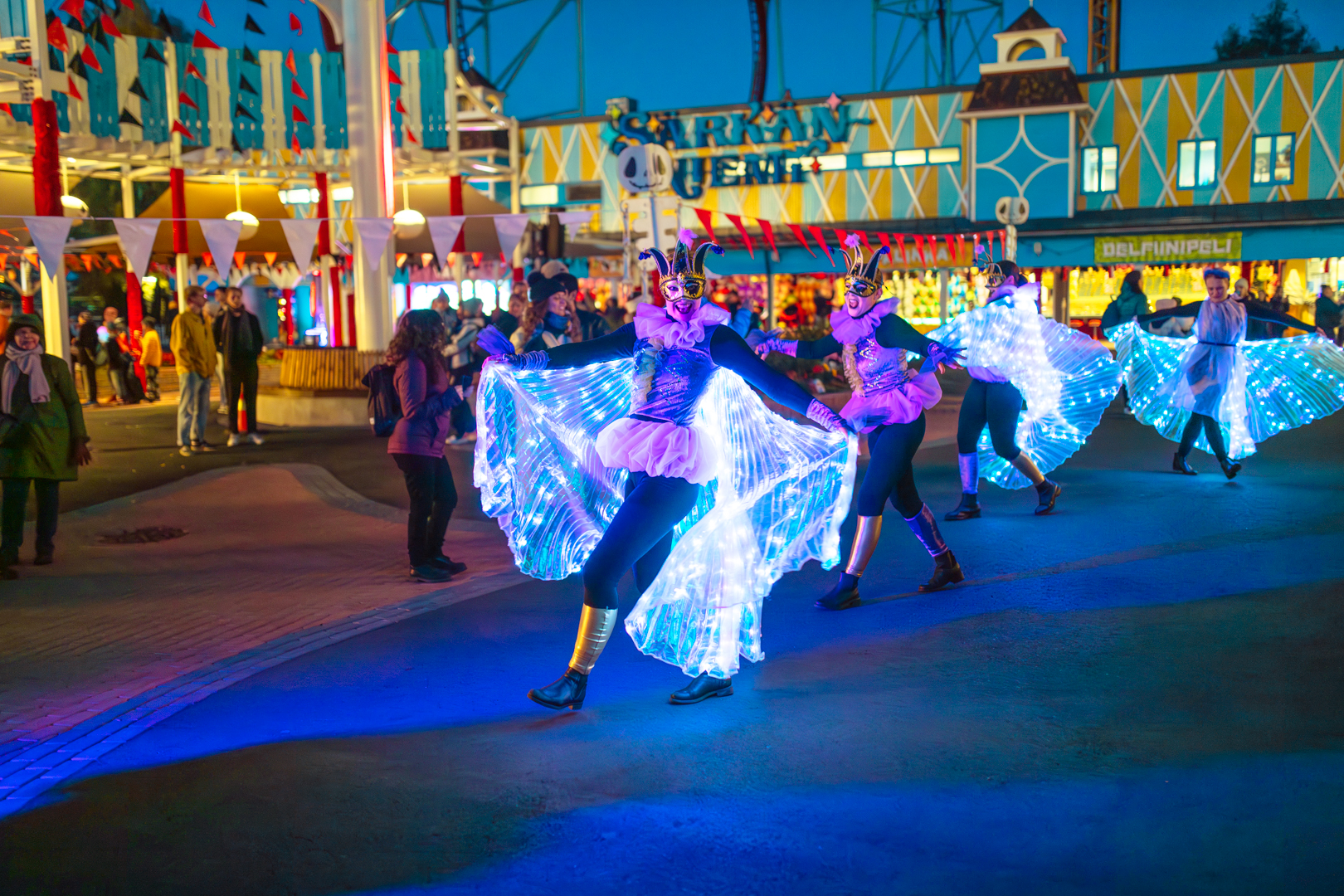 Sisältää kuljetuksen, huvipuiston sisäänpääsyn ja karnevaaliohjelman, mutta ei huvilaitteita, elämyskohteita, Ennustajaa eikä kauhukohdetta.